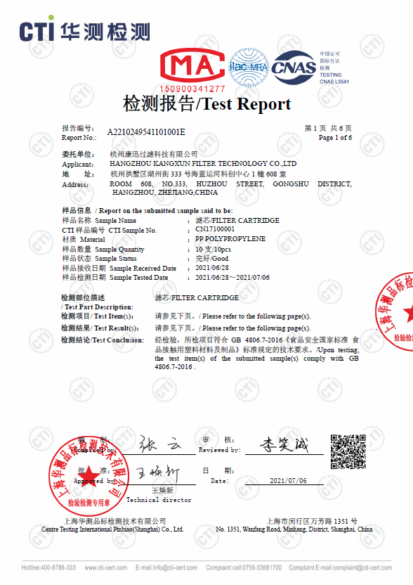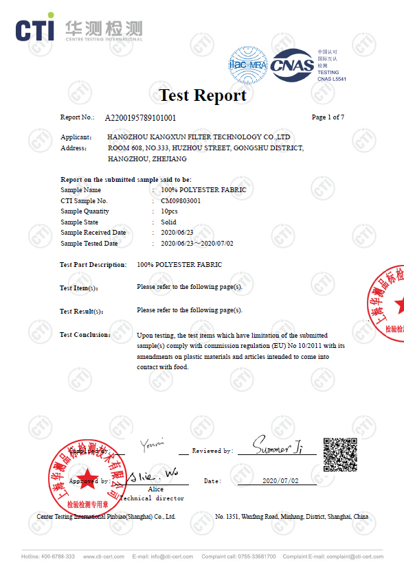 HANGZHOU KANGXUN FILTER TECHNOLOGY CO.,LTD.